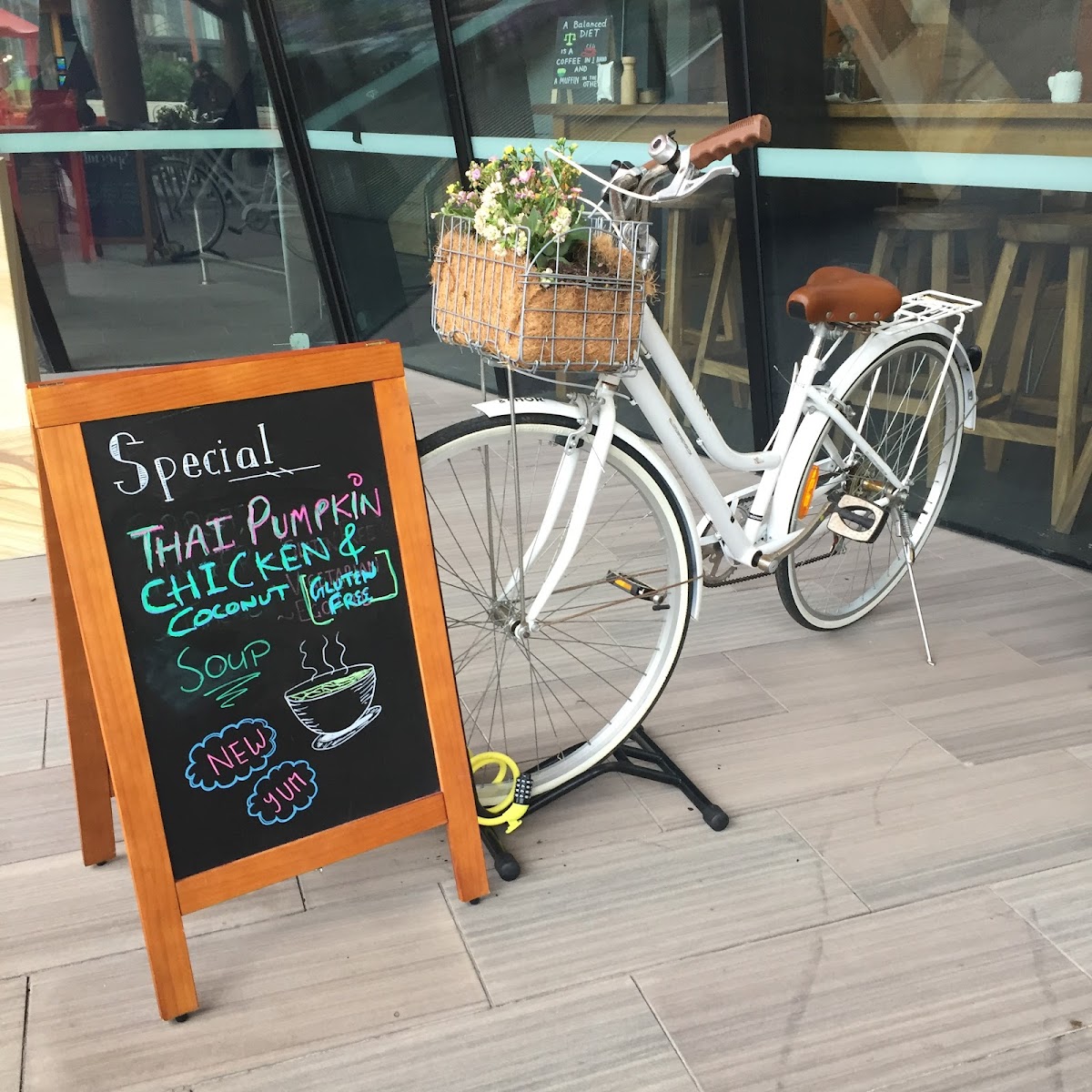 Vegan, vegetarian. Gluten-free option is available. Grilled zucchini, rocket, tomatoes, red onion and hummus all wrapped up in a spinach tortilla.